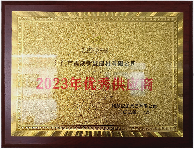 近日,江門禹成榮獲翔順集團公司授予的2023年優秀供應商”榮譽獎牌