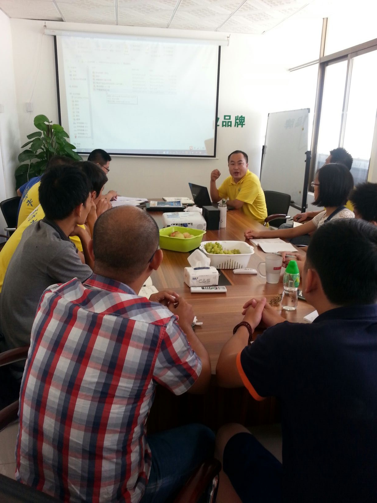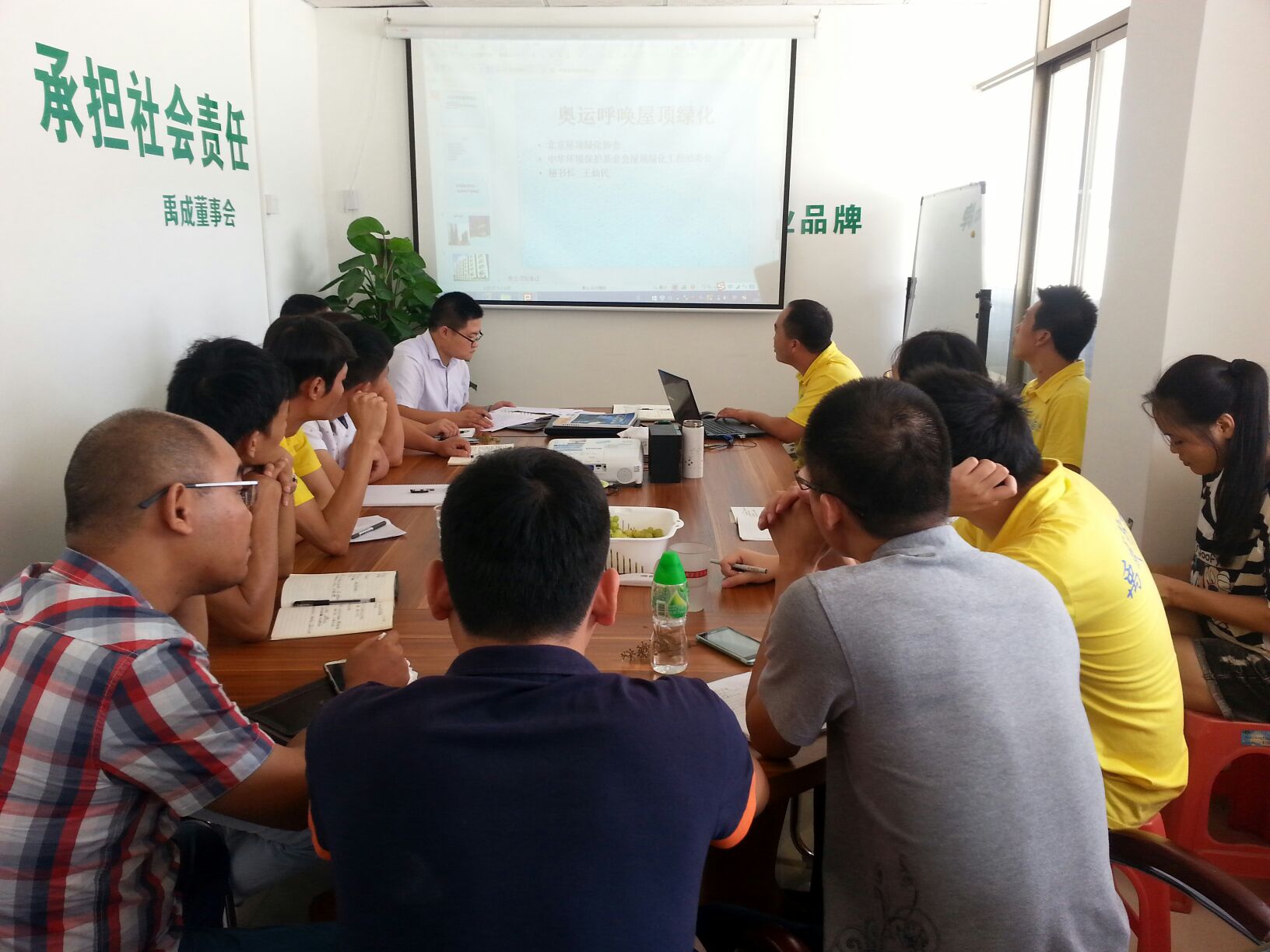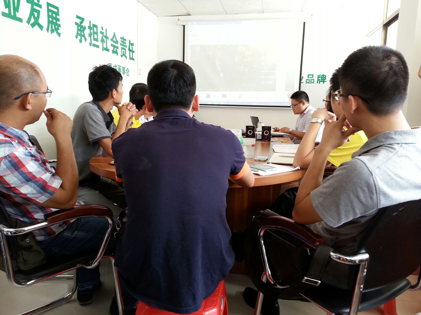 短暫休息過后,我們果香四溢、歡聲笑語聲中迎來總經理張總為大家帶來了《綠色環保建材專業知識》的培訓。張總指出:我們現在生活在汽車尾氣、大量空調排放、溫度的升高等空氣污染的城市里,對所有人的身體都會一定的傷害,所以大家應該盡自己的責任,控制污染源,保護我們的生活環境。控制污染的方法就是綠色環保,在我們防水行業漏水、掉磚的現象隨處可見,對我們的環境及安全有一定的隱患,所以建筑防水貼磚是建筑安全的一部份。