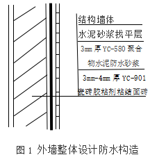 A、傳統(tǒng)磚飾面外墻防水構(gòu)造(廚衛(wèi)間立壁)(圖1、圖2)